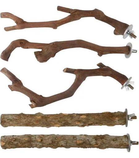 Perche De Calopsitte En Bois Naturel,Perchoirs À Oiseaux,Branches D'entraînement À L'exercice,Support De Perroquet,Accessoires Pour Petits Ou Moyens Oiseaux,5 Pièces