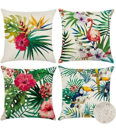AIDUCHO Extérieur Housse De Coussin, Lot De 4 Imperméable Plantes Et Fleurs Tropicales Et Oiseaux Motif Canapé Taie D'oreiller Pour Patio Jardin