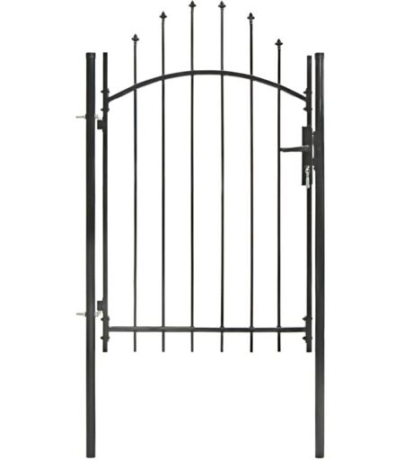 Ce portail de jardin sera une porte d'entrée pratique au style moderne pour isoler votre jardin du monde extérieur. Très stable et durable, le portail de clôture formera une barrière de sécurité pratique pour votre jardin, patio ou terrasse. Grâce à son design élégant et au dessus arqué et à ses renforts horizontaux résistants pour renforcer le cadre, notre portail de jardin fournira un haut degré de sécurité tout en constituant une fabuleuse entrée sur votre propriété. Fabriquée en acier robuste, la porte est revêtue de poudre contre la rouille et la corrosion. Cette porte de clôture est équipée d'un système de verrouillage et est livrée avec deux poteaux solides le long des charnières robustes pour une installation facile. Cette porte de jardin est une excellente combinaison de style, de résistance et de stabilité ! Couleur : noir Matériau : acier enduit de poudre Dimensions totales : 1 x 2 m (L x H) Dimensions du panneau : 1 x (1,25-1,5) m (L x H) Hauteur du poteau : 1,75 m ...