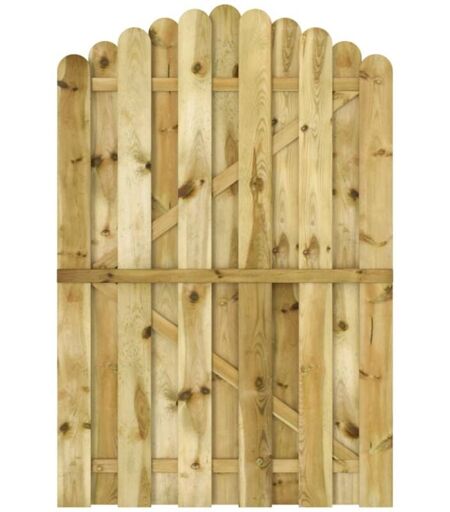 Notre portillon de jardin en bois massif au design voûté dégage un charme rustique et constituera un point d'entrée idéal pour la clôture autour de votre jardin ou patio. Ce portillon de jardin durable est fabriqué en bois de pin respectueux de l'environnement. Le bois de pin imprégné est résistant à l’usure, aux intempéries et à la pourriture. Composé de lattes verticales et de traverses horizontales et diagonales, le portillon est robuste, stable et durable. Notre portail d'entrée est facile à assembler avec les clous inclus. Remarque 1) : les charnières et le crochet de la porte ne sont pas inclus. Remarque 2) : le bois est un produit naturel et peut montrer des imperfections. Matériau : pin, imprégné de vert Taille : 100 x 150 cm (l x H) Design en arche Écologique Résistance aux intempéries et à la pourriture ...
