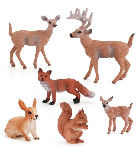 Figurines D'Animaux Réalistes En Vinyle, Ensemble De Jouets Éducatifs Animaux De La Jungle En Plastique Avec Rab De Cerf 6 Pièces