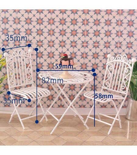 Ensemble De Meubles Miniatures De Style Européen En Métal Blanc, 3 Pièces/Ensemble, Table Et Chaise, Modèle De Jouets Pour 1/12 Poupées, Décoration De Maison, De Chambre Et De Jardin