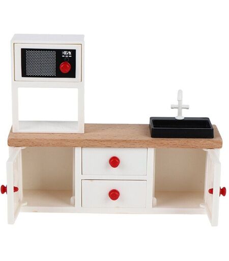 Jouets Pour La Décoration De Maison De Poupée, 1 Ensemble Mini Évier De Cuisine, Lavabo Avec Évier À Main, Meuble Miniature Pour Four À Micro-Ondes