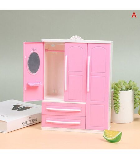 Ensemble De Rangement À Trois Côtés Pour Maison De Poupée, Rose Miniature, Cintre De Garde-Robe, Tiroir, Miroir, Placard De Chambre À Coucher, Accessoires De Meubles