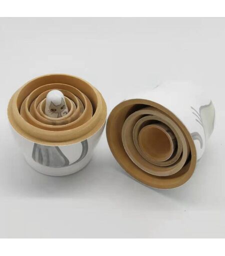 Chat De Dessin Animé En Bois Pour Peinture Matrioshka, Poupées De Nidification Russes, Décor De Maison, 5 Pièces