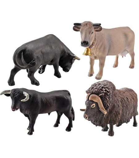 Lot De 4 Figurines D'Animaux En Pvc Réalistes, Accessoires D'Affichage, Ensemble De Jeu Taureau Bison Ranch Vache, Pour Décoration De Bureau À Domicile, À Collectionner