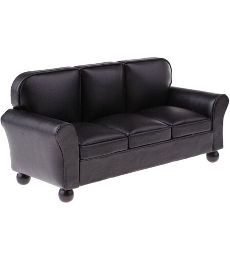 Canapé 12e En Cuir De Style Européen Pour Trois Personnes, Mobilier De Salon Pour Maison De Poupée, Modèle D'Exposition, Ornements Noirs