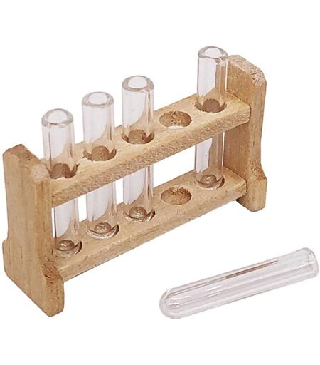 Tubes À Essai De Laboratoire En Verre Avec Support En Bois, Ensemble D'Accessoires De Décoration Pour Maison De Poupée 1:12, 5 Pièces/Ensemble
