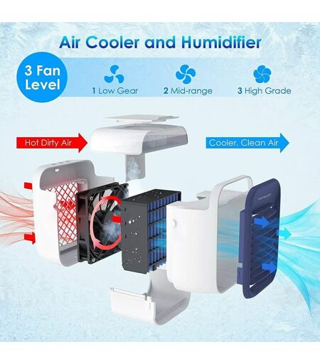 PERLE RARE Climatiseur Mobile Silencieux, Climatiseur Portable, Refroidisseur d'air Portable, Climatiseur de Bureau Portable 300ml, Ventilateur Humidificateur