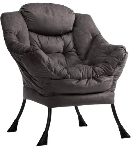 Fauteuil Chaise Scandinaves Avec Accoudoirs Et Poche Chaise Paresseuse En Tissu Moderne, Chaise De Canapé De Loisirs Avec Structure En Acier, Gris Brun,64d X 80w X 95h Cm