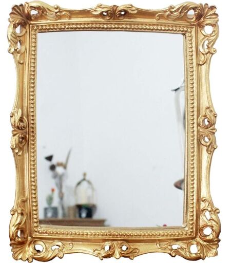 Miroir décoratif doré de style vintage, avec la sensation de luxe du siècle dernier. Fixation murale, support de table et organisateur de bijoux – Finition dorée avec aspect ancien Multifonction, le dos contient un support, adapté pour se tenir debout sur la table, le miroir peut également être monté sur le mur comme décoration murale, et peut également être utilisé comme plateau à bijoux pour placer des bijoux et des cosmétiques, complément parfait pour la table. TAILLE: taille globale-24 x 28 CM, taille du miroir -18 x 22 CM. ...