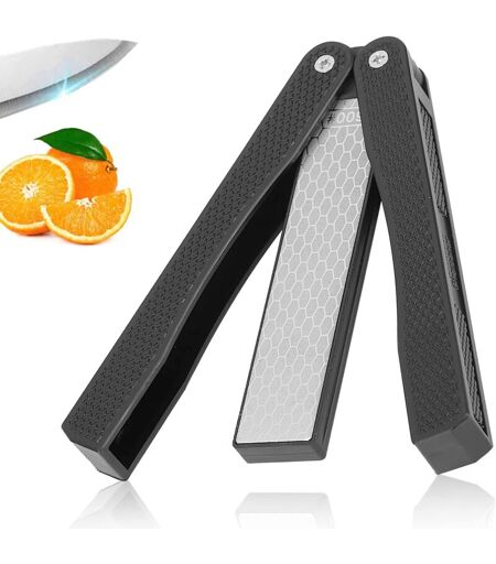 PIERRES À AIGUISER DOUBLE FACE -- Aiguiseur manuel professionnel Combinées à une mouture grossière et fine pour répondre à différents besoins. Côté différent que vous pouvez utiliser pour affûter différents types d'outils.tion du manche lorsque vous l'utilisez, et évitent de plier vos doigts. DESIGN EXQUIS --Pierre à Aiguiser 2 en 1 adopte un design concave-convexe à l'extrémité du manche, empêche le manche de se disloquer lors de son utilisation et évite de plier les doigts. FACILE À UTILISER -- La aiguiseur couteaux utilise des surfaces en diamant pour affûter les couteaux et les outils plus rapidement que les pierres traditionnelles. Il n'y a pas besoin d'huile ou d'eau. FACILE À UTILISER -- La aiguiseur couteaux utilise des surfaces en diamant pour affûter les couteaux et les outils plus rapidement que les pierres traditionnelles. Il n'y a pas besoin d'huile ou d'eau. CONCEPTION PLIABLE -- L'affûteur diamant peut être plié comme un éventail pliant, offrant une excellente ...