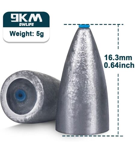 Poids De Pêche Pour Texas Rigs Bass,9km Bullet,15 Pièces,Matériel Pour Eau Salée Et Douce,1.75 14g - Type 5g 16.3mm 15pcs
