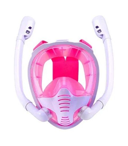 Masque De Plongée Plein Visage 180° Silicone Panoramique Dry Top Eau De Plongée Lunettes De Natation Avec 2 Snorkeling Anti-Brouillard Anti-Fuite - Type Pink-S/M