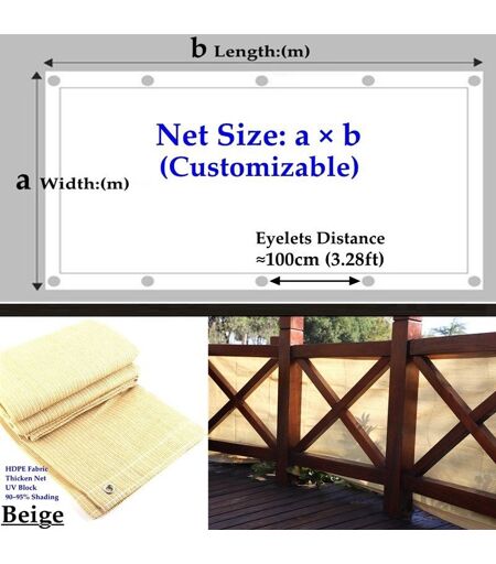 Filet Pare-Soleil Anti-Uv En Hdpe Beige Épais,Clôture De Sécurité Pour La Maison,Le Jardin,L'hôtel,Le Balcon,Écran De Confidentialité,Modifications D'ombre,S64. - Type 100cm Eyelet Space-0.9m X 6m