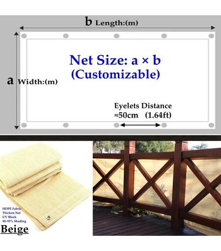 Filet Pare-Soleil Anti-Uv En Hdpe Beige Épais,Clôture De Sécurité Pour La Maison,Le Jardin,L'hôtel,Le Balcon,Écran De Confidentialité,Modifications D'ombre,S64. - Type 50cm Eyelet Space-0.9m X 1.8m