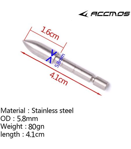 Pointe de flèche en acier inoxydable,accessoire de tir à l'arc,12 pièces,ID 4,2mm,70 80 90 100 110 120 Mars - Type 80grain OD5.8mm