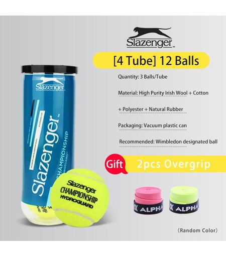 Slazenger Balle De Tennis Tube 3 Boules/Peut Aspirer Pressuriseur Pratique Formation Wimbledon Balles De Tennis Championnat Hydroguard - Type 4 Tube 12 Balls