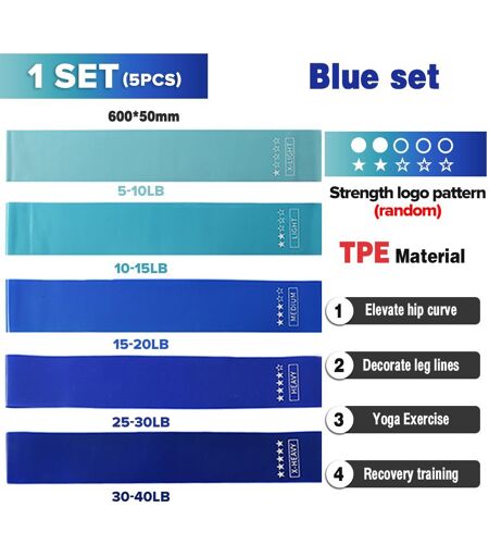 5 Pcs [1 Set] Gym Fitness Bandes De Résistance Portable Fitness Équipement D¿Entraînement Yoga Élastique Gomme Force Pilates Crossfit Femmes - Type Blue Set-Tpe