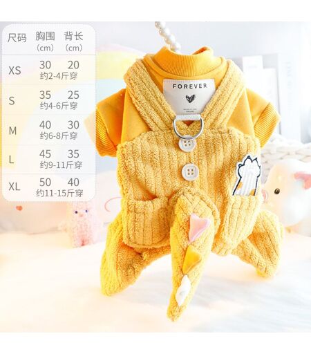 Combinaisons Pour Chien À Quatre Pattes,Queue De Dinosaure 3d,Salopette Remorquable Pour Petit Chien,Super Chaude Et Unis Issante,Sourire,Automne Et Hiver - Type Yellow-L
