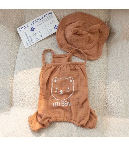 Combinaison Fine Pour Animaux De Compagnie,Vêtements Pour Chiens,Ours,Écharpe,Chat,Petits Vêtements Mignons,Printemps,Été,Garçons,Filles,Chihuahua,Produits Pour Animaux De - Type Brown-Give Hat-L