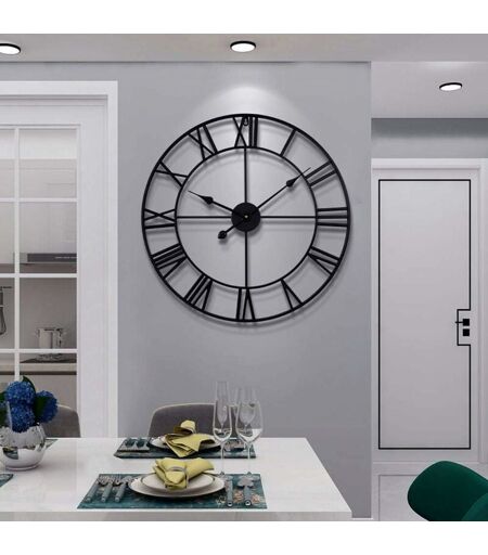 ERSANDY Grande Horloge Murale Ronde en métal de Style Vintage Silencieux sans tic-tac à Piles 40 cm horloges à Chiffres Romains Noirs pour Salon Chambre