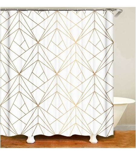 CSPARKV Design Rideau de douche doré ligne jaune triangles salle de bain textile rideau anti-moisissure effet lavable rideau douche rideau 12 anneaux c poids