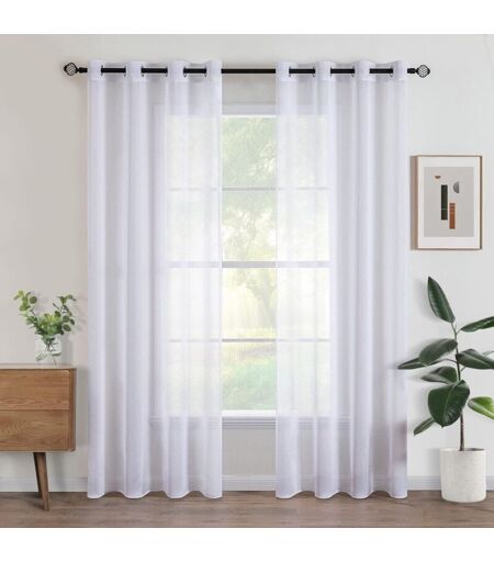 Blanc 150x250cm Lot de 2 Rideaux Voilage à Oeillet Rideau Semi-Transparent intérieurs pour Chambre Salon Maison
