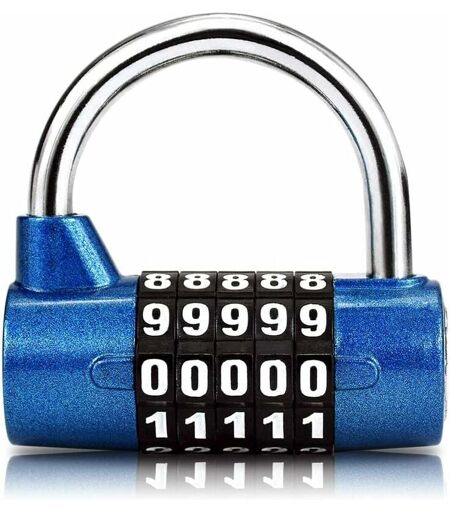 Fontainebleau - Cadenas à combinaison à 5 chiffres, réinitialisable pour l'école, la boîte à outils, l'armoire, etc. (bleu)