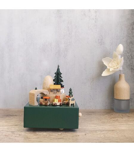Boîte À Musique En Bois Fait À La Main,Boîte À Musique Créative Rétro Spin En Hêtre,Fabrication De Bûches,Collection D'ornements,Décoration Pour Remise De Diplôme,Cadeau De S - Type Green Christmas