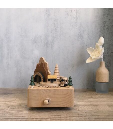 Boîte À Musique En Bois Fait À La Main,Boîte À Musique Créative Rétro Spin En Hêtre,Fabrication De Bûches,Collection D'ornements,Décoration Pour Remise De Diplôme,Cadeau De Saint - Type Cave Train