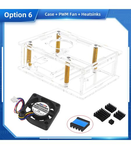 Dissipateur thermique en cuivre et aluminium pour Raspberry Pi 5,boîtier en acrylique,coque transparente,ventilateur de refroidissement en option - Type 6 With PWN Fan