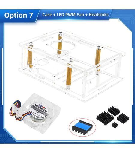 Dissipateur thermique en cuivre et aluminium pour Raspberry Pi 5,boîtier en acrylique,coque transparente,ventilateur de refroidissement en option - Type 7with LED Fan