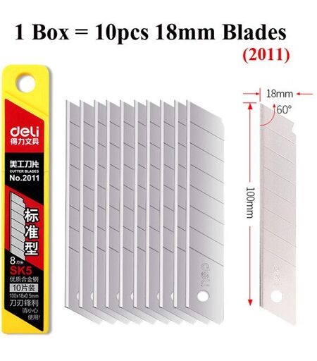Deli-Lame de rechange en acier à haute teneur en carbone pour coupe-boîte,ustensile utilitaire SK5 SK4,9mm,18mm,10 pièces par boîte - Type 1 Box 2011