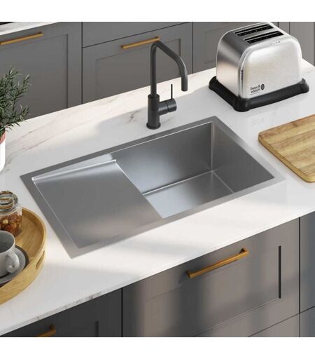 Profitez de l'avantage de cet évier de cuisine au design contemporain épuré. La vasque avec égouttoir en finition soyeuse et satinée suintera la classe et la sophistication, qui s'adaptera à n'importe quel décor de cuisine ! Combinant le meilleur de la fonction et du design, cet évier est fabriqué en acier inoxydable fait main de haute qualité avec une peinture anti-condensation, résistant à la moisissure, sans plomb et résistant à la corrosion. C'est l'insonorisation avec les coussinets de réduction du son. De plus, l'évier avec une conception unique de cadre en X facilite un écoulement rapide, empêchant l'eau stagnante au fond de l'évier. L'évier peut être installé sous le comptoir, encastré et suspendu et vous pouvez l'installer comme vous le souhaitez. Couleur : argenté Matériau : acier inoxydable avec finition brossée Dimensions totales : 75 x 44 x 20 cm (L x l x P) Épaisseur supérieure : 2,5 mm Qualité alimentaire Avec un égouttoir Comprend des coussins d'insonorisation Sans ...
