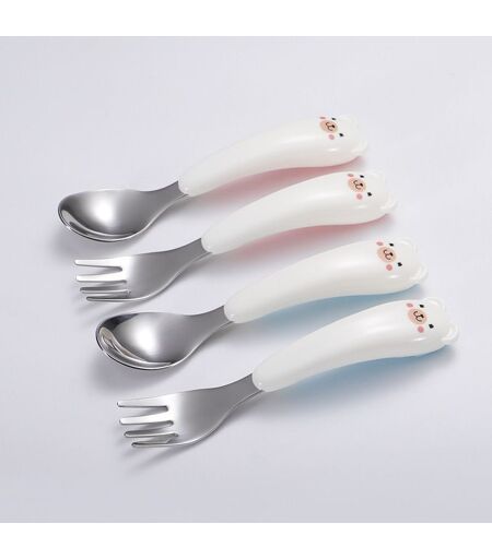 Dessin Animé 304 Acier Inoxydable Enfants Fourchette Cuillere Vaisselle Ensemble Ours Fourchette Cuillere Bébé Fourchette Cuillere Mignon Bébé Fourchette Cuillere Ours Cuillere Bleu