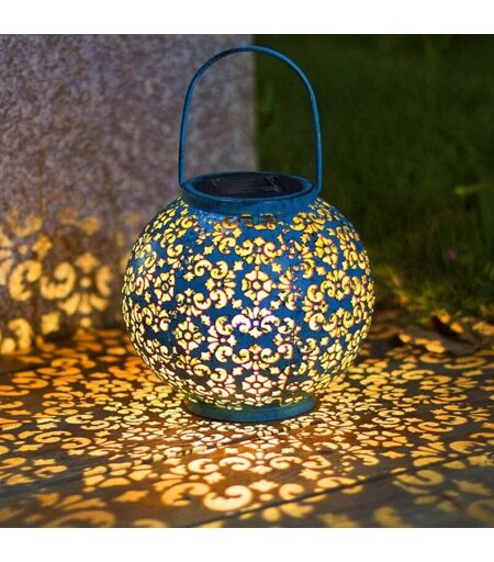 La lanterne solaire est fabriquée en métal de qualité avec une finition antirouille. Elle est étanche selon la norme IP65 et résiste au froid et à la chaleur. Elle est équipée d'une poignée durable, ce qui permet de la poser sur une table ou de la suspendre facilement à un crochet de berger. Grande lanterne lumineuse : bleu sarcelle. La lanterne décorative est parfaite pour votre extérieur, cour, jardin, camping, sentier ou décoration murale, c'est vraiment un beau cadeau de jardin et de vacances pour votre mère, père, grand-mère, grand-père, sœurs et amis. Design unique de fleurs magnifiques : Les adorables lanternes solaires d'extérieur émettent une douce lueur jaune la nuit et affichent un grand motif vif sur la table ou le sol. La finition antique la rend plus unique avec un sens esthétique. Ajoutez une ambiance romantique et agréable à votre jardin et à votre terrasse. Longue durée de vie : La lanterne suspendue d'extérieur est alimentée par l'énergie solaire. Il suffit de la ...