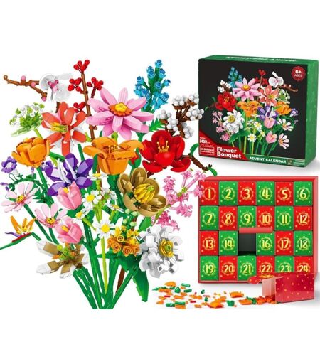 CREA Calendrier de l'Avent de Noël, bouquets de fleurs, boîte surprise, bouquet de marguerites, 24 jours de Noël