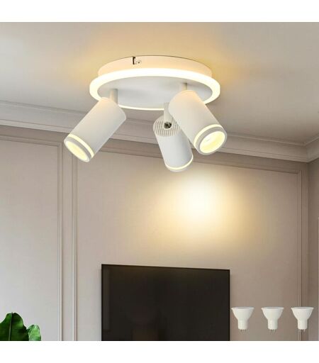 LITZEE Spot d'intérieur-Plafonnier led 3 Spots,Rond Spot de plafond Pivotants & Orientable,Moderne Éclairage luminaire avec lueur inférieure 8W+3GU10