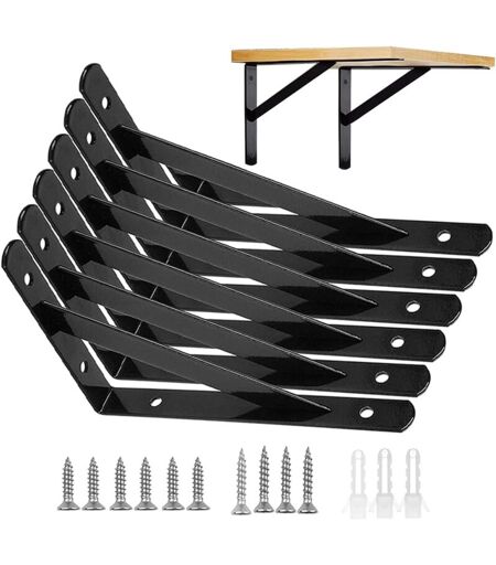 ?Qualité supérieure ?Les supports d'étagère sont en acier de haute qualité. avec une finition de cuisson noire. Ce sont des surfaces lisses et résistantes aux rayures. résistant à la rouille et aux taches. corrosion. Le bord lisse les rend plus sûrs et protège vos mains. ?Support d'étagère triangulaire ?Les supports d'étagère en acier inoxydable sont la structure triangulaire la plus solide. Ils peuvent sembler simples, mais ils peuvent fournir une grande capacité de charge. Les triangles ont une force naturelle qui soutient les structures contre les pressions latérales, se nivelle facilement et se débarrasse des oscillations. ?Facile à installer ?Le colis est livré. avec tout le matériel nécessaire, comprend 6 supports d'étagère et toutes les vis et chevilles. Il vous suffit de préparer un tournevis pour l'installer facilement. ?Décoratif ?La peinture noire brillante sur les lignes d'échantillonnage triangulaires donne aux supports un aspect élégant. Ils peuvent correspondre à la ...