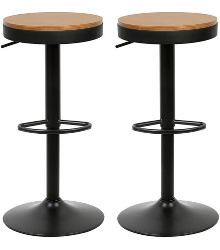 Yongqing - Lot de 2 Tabourets de Bar avec Repose-Pieds Vintage Couleur du Bois et Noir