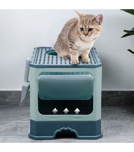 Yongqing - Bac Litière Chat - Maison de Toilette pour Chat Fermée - 50 x 35 x 38cm - Vert d'eau foncé