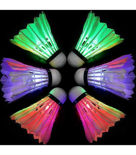 Crea - 6 Pieces Led Badminton Shuttlecocks, Dark Night Colorful Led Goose Feather Glow Birdies