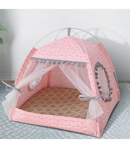 Tente De Lit Pour Animaux De Compagnie,Tipi Général Fermé,Hamac Confortable Avec Sols,Maison Pour Chat,Maison Pour Petit Chien,Produits Pour Animaux De Compagnie,Accessoires - Type Pink Floral-L