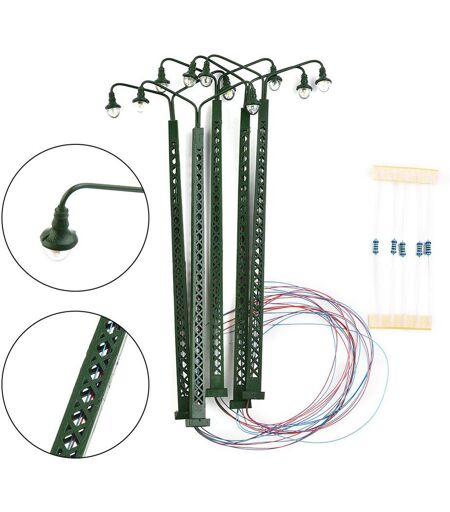 5pcs Modèle De Chemin De Fer Lampe Treillis Mât Ho 1:87 Échelle Led Réverbère Disposition De Train Jouets Décoration De Jardin Artisanat Miniatures