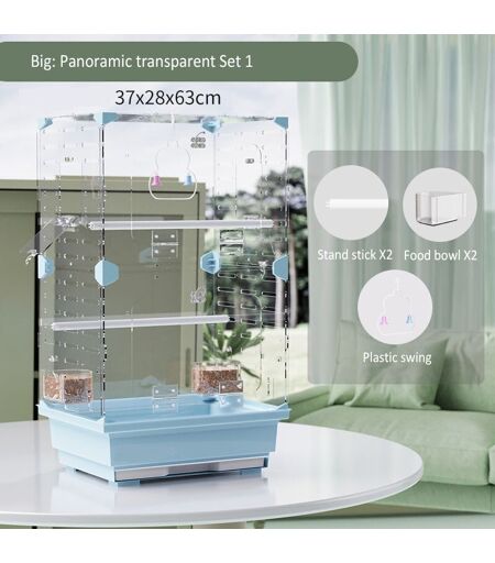 Abri à oiseaux en acrylique transparent pour la maison,cage d'oiseau volante,perroquet debout,ornement de premier plan,élevage - Type Blue Big-Set 1