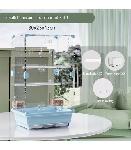 Abri à oiseaux en acrylique transparent pour la maison,cage d'oiseau volante,perroquet debout,ornement de premier plan,élevage - Type Blue Small-Set 1