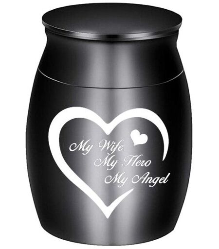 Mini Pot De Cendres Commémoratif De Famille,Noir,Pour Support De Cendres Humaines,Petit Pot Souvenir,Mon Père,Mon Héros,Mon Ange - Type Wife-70x45mm