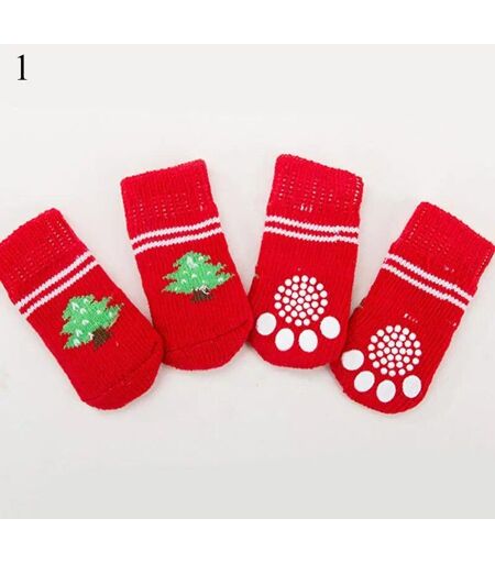 Chaussettes Tricotées Antidérapantes En Coton Pour Chien Et Chat,Chaussures D'nik,Protection Des Pattes À Enfiler,Document Aléatoire,4 Pièces/Ensemble - Type S #L