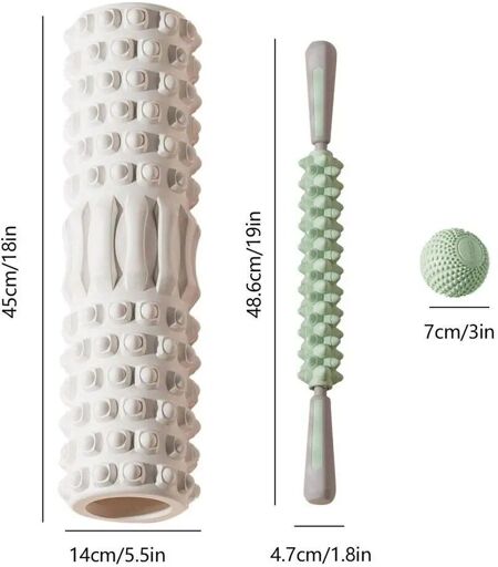 Rouleau De Yoga Manuel En Mousse Pour Les Muscles Des Jambes,Bâton Pour Les Bras,Les Hanches,Accessoire Pour La Maison - Type White 3pcs